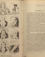This image portrays an icescape with distant mountains. The Arctic sun is low on the horizon, and smoke-like clouds extend in a widening mass from the far right of the image to the upper left corner. A long line of men with dogsleds attempt to go around a crevasse in the ice that extends from the lower right to the upper left. Two men wait by a sled (packed with a chest, kettle, basket, and blanket), one with his head in his hands. There is a sizeable hole in the ice to their immediate right.3This image portrays an icescape with distant mountains. The Arctic sun is low on the horizon, and…