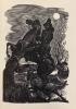 Fritz Eichenberg, "Jane's First Meeting with Mr. Rochester," Jane Eyre (1847), by Charlotte Brontë, 1943 Random House Edition, from the personal collection of Catherine Golden. All three Brontë sisters clearly took elements from their stories of Glass Town and put them to use in their later published novels. One of the more obvious examples of this occurs with the trope of the Byronic male, a figure who was dark, brooding, mysterious, angry, and often somewhat threatening. In Angria, this trope is realized through the character of Arthur Wellesley, or Zamorna, a mysterious poet who manipulates the people around him, including his wife, for his own personal gain. Variations of Zamorna appear throughout all three sisters' works in the characters of Charlotte's Mr. Rochester, Emily's Heathcliff, and Anne's Arthur Huntingdon. This illustration by Fritz Eichenberg for the 1943 edition of Jane Eyre shows Mr. Rochester as he is introduced in the narrative: a dark and threatening figure who approaches Jane on a lonesome road in the dark of night. While there are some key differences between the Brontës' later characters and the initial figure of Zamorna, traces of their original narratives with Angria and Gondol clearly influence all of their novels.