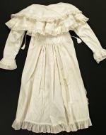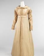 The museum catalogs the pelisse, which was popularized in the early 19th century, around 1815-1820. It is described here as a very fashionable luxury that was fitted and tailored to cover the gowns underneath, Inspired by Greco-Roman military influence, the neoclassic style began as children’s wear made with fine white cotton, and progressed into women’s high fashion in the form of a fitted overcoat worn over a dress.
