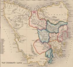 Van Diemen’s Land was the name Europeans first used for Tasmania, part of present-day Australia. The Dutch explorer Abel Tasman was the first European to explore the area in 1642 and named the area for Anthony van Diemen, the Governor-General of the Dutch East Indies who had commissioned the voyage. It was not discovered to be an island until 1798-99. Van Diemen’s Land served as a penal colony from the early 1800s until 1853, when penal transportation was abolished. The name officially changed in 1856.