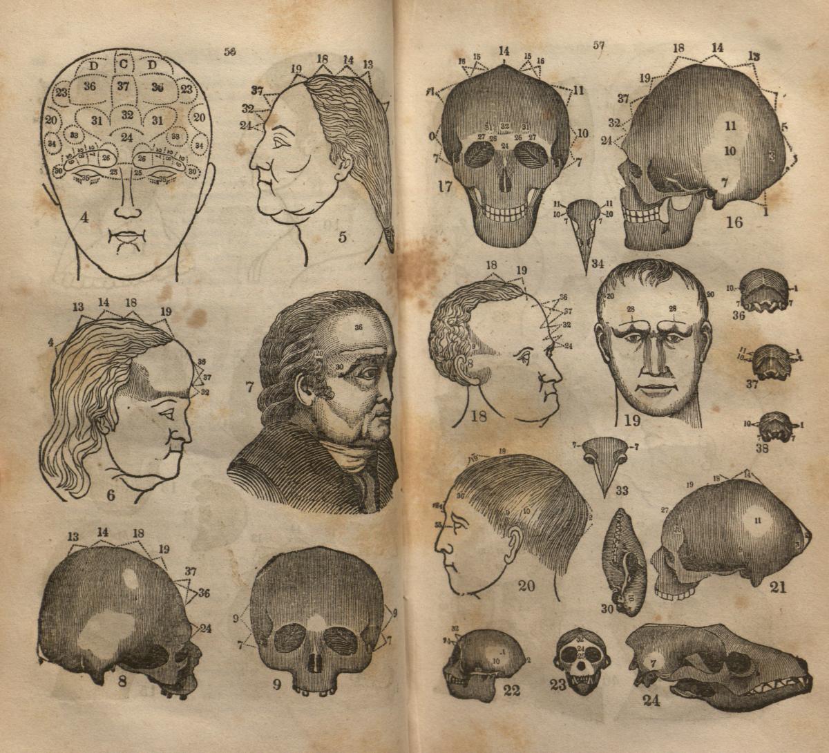 This image provides multiple illustrations of skulls and famous busts, providing measurements for each by which organ size can be determined. Note especially the famous political figures, as well as the attention paid to notorious criminals. 3This image provides multiple illustrations of skulls and famous busts, providing measurements for each by which organ size can be determined. Note especially the famous political figures, as well as the attention paid to notorious criminals.
