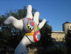 The structure was 25m (82feet) long and 9.1m (30 feet) wide, weighing around 6 tons. It needed a team of eight people working during 40 days to build the sculpture-installation: building a frame with metal rebar, covering it with chicken wire, sheathing it with fabric attached with smelly animal glue and painting it. The inside was painted in black and the outside was multicoloured.