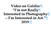 Video on Goldin: “I’m not Really Interested in Photography – I’m Interested in Art.” 2019. https://www.youtube.com/watch?v=m1H6OJfDGWA. Accessed 6 Mar. 2023.