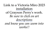 Link to a Victoria Miro 2023 installation of Grayson Perry's work. Vortic Art. https://vortic.art/exhibitions/grayson-perry-5332?sceneId=3243&artworkId=12554. Accessed 14 Mar. 2024.