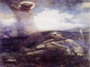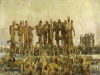 This is a beloved painting that brought comfort to many who has lost their ones in battle. This painting was purchased by Queen Mary for Princess Beatrice, who had lost her lost son at the front line in 1914. The piece shows a dead soldier lying at the feet of Christ on the cross. The figure of Christ is transparent, and the soldier’s right hand is seen placed on the feet of the apparition. This subtle detail suggests the invisible presence of Christ comforting the soldier while acknowledging the struggle and sacrifice of the fallen through the connectedness of touch. The acknowledgment from Christ, recognizing the soldier as the sacrificial lamb for his country is the core element of this painting that allowed many who are in mourning to feel that the death of their loved ones was not in vain. However, on further observation, it is worth noting that death in this piece is represented with much restraint. The soldier is seen lying peacefully with no blood and apparent wound. All the ugly details of war have been left out, leaving the focus on only the soldier’s selfless and brave sacrifice.