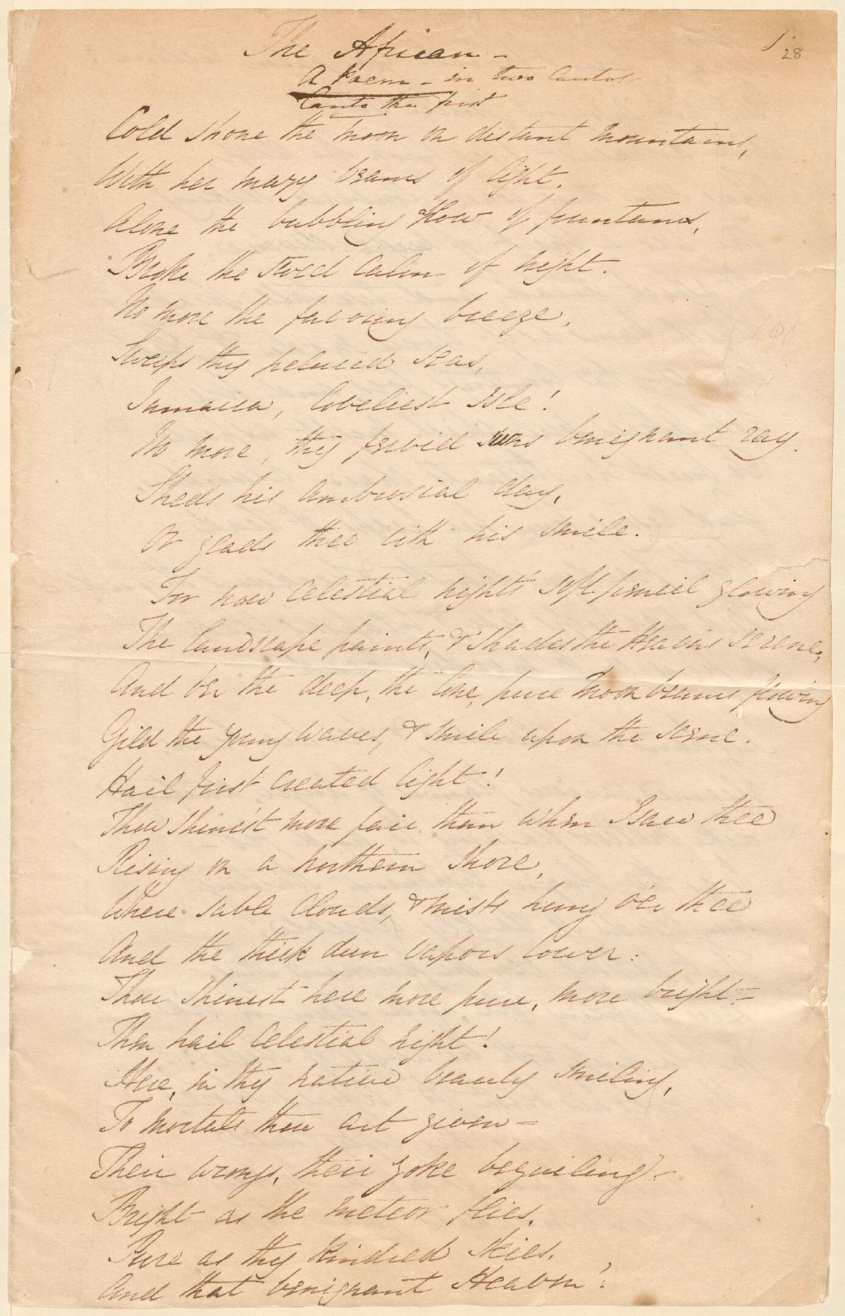 Page 1 of EBB's manuscript of "The African."