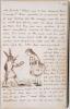 While slightly more jarring than the classic Tenniel drawings yet to come, Carroll’s illustrations realize his creative sense of wonder and curiosity. The scene shown here exemplifies Alice’s enduring message about learning through wonder, a theme that resonates across adaptations and translations. Alice and the White Rabbit are depicted conversing in the illustration with Carroll’s handwritten text surrounding it, a stylistic choice that will be built upon and made even more engaging as Carroll’s vision is more fully realized. Alice is described as looking “curiously” about, perhaps the most crucial aspect of her character which has always been a part of Carroll’s story. Carroll's image highlights the importance of illustrations within the story. Even though Carroll himself was not known for his illustrative prowess, he knew the importance of seeing the scenes visually depicted as opposed to just reading the descriptions. Carroll's illustrations maintain the feeling of wonder and curiosity reflected in his extraordinary writing voice. Carroll's illustrations exemplify the power of picture and brought the story to life even in this early version. This image, and Alice's Adventures Under Ground as a whole, serves to remind readers that Alice's legacy and message of curiosity, wonder, exploration, and adventure have been alive from the very beginning.