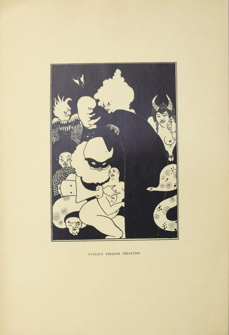 Lucian’s Strange Creatures by Aubrey Beardsley in The Savoy, (1896) is an example of sinuous and distorted creatures, which create an effect of alienation. These odd shapes make Arthur Machen’s unnameable horrors congenital and tactile in a way that the written word cannot. vBeardsley’s use of ambiguity and distortion reflects fin-de-siècle Gothic art’s engagement with cultural anxieties. According to David Punter as described in his book, The Literature of Terror, Gothic literature has a specific function of revealing fears through the disturbing and the odd. This illustration provides an incisive representation of the aesthetics of creativity and the uncanny in the weird fiction tradition in Britain at the fin de siècle.