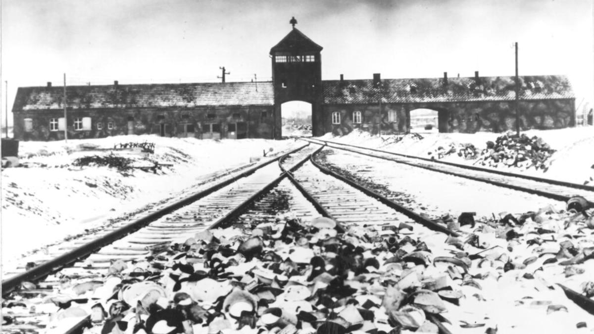 Entrance to the famous Auschwitz extermination camp, where many people died.