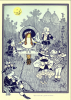 W. W. Denslow, "Dorothy Did not Know What to Say to this, for all the People Seemed to Think her a Witch, and She Knew Very Well She Was only an Ordinary Little Girl Who Had Come by the Chance of a Cyclone into a Strange Land," The Wonderful Wizard of Oz (1900), by L. Frank Baum. In this quote and image, Dorothy has just begun her journey along the yellow brick road after being thrust into this new world by a cyclone. She is very confused, but she adjusts rather quickly to the zany world of Oz. After being in this world, she is regarded as a "good witch," while she insists that she is not a witch at all. Nevertheless, she is kind to all and is full of love for everyone, even if she finds them a bit strange. W.W. Denslow illustrates Dorothy's face as very surprised and a bit perplexed, because she didn't really have time to internalize what was going on. She has just plopped into Oz in a house, is probably dizzy from the cyclone, and now a bunch of little people are crowning her! So I think the way Denslow depicts her in this scene is very charming. The Munchkins all have a cheery disposition and welcome the strange little girl with open arms. One of my favorite things that Denslow does is that he draws characters or items outside of the box, almost like they're sitting on the frame!