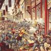 Image showing a battle between 2 groups, the Boxers (dressed in yellow) and the guards (dressed in gray). Featured in Exhibit Gallery - Genocides throughout history Copyright © Vetted? No