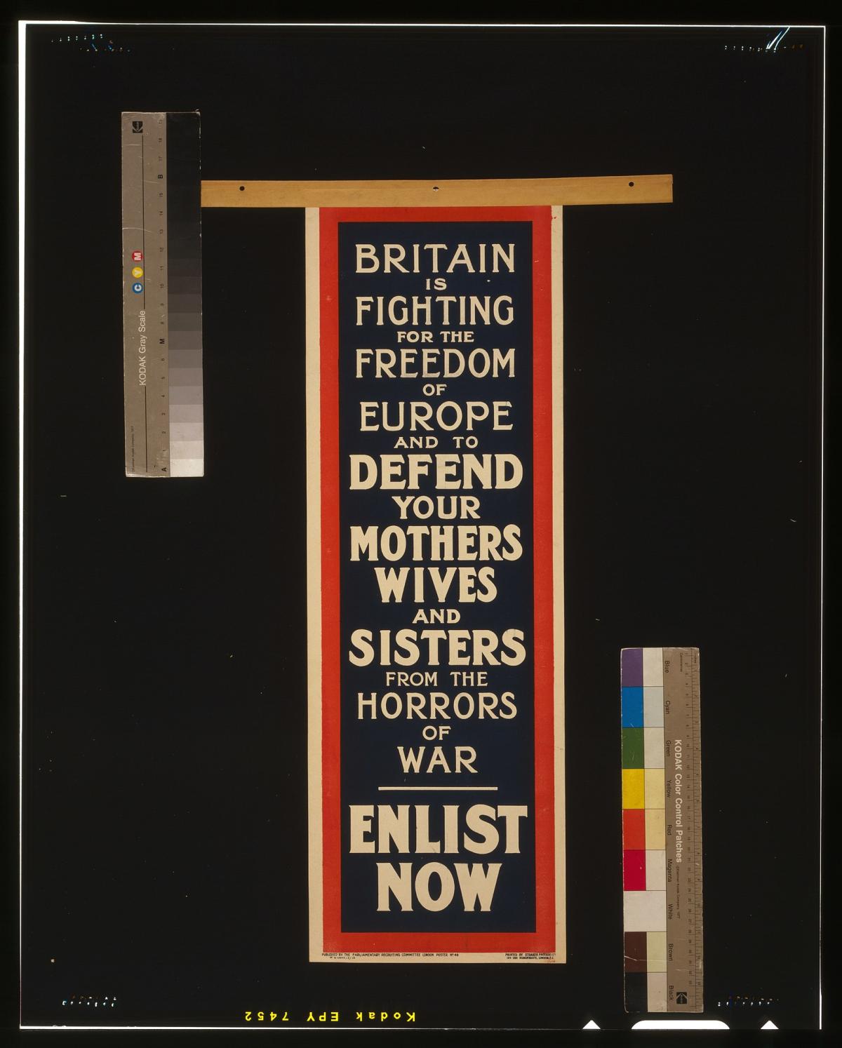 Propaganda was used globally during World War One, urging people to join the fight, encourage hatred against national ememies, and moreover, convince the public how just the cause of War was. Propaganda as a whole exudes patriotism/nationalism, placing emphasis on how enlisting was their duty, and that fighting would bring them glory and honour--a story that had been told for hundereds of years. But this was an illusion; the heroism of war was nothing compared to its shocking reality. Following WWI, people were disillusioned, and this is what led to the rise of Modernism. This image is a British propaganda banner, urging men to protect their country, mothers and daughters from the "horrors of war". It's ironic how they mention these horrors, while sending their men off to face these very same horrors. The final lines of "Dulce Et Decorum Est" by Wilfred Owen reads, "Dulce et decorum est, Pro patria mori" (Lines 27-28), which translates to "It is sweet and fitting to die for the homeland." Owen, who experienced the horrors of war firsthand (and unfortunately died shortly before armistice), calls this phrase an "old lie" (Line 27), completely denouncing it.