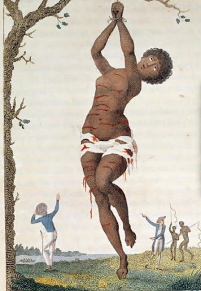 Fig. 1. Flagellation of a Female Samboe Slave, 1793. William Blake after John Gabriel Stedman. Stedman's "Narrative, of a Five Years' Expedition" http://l-adam-mekler.com/ebbrowning.htm : https://www.nga.gov/collection/art-object-page.4991.html