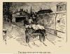 “The Head Hung Out of the Cart Tail,” Black Beauty, by Anna Sewell, 1877, from Young Folks edition, 1902. This illustration by an unknown artist renders the tragic moment in which Beauty sees his beloved friend Ginger being carried off in cart after dying from overwork and abuse. She has suffered in the past at the hands of cruel owners, and because she is always strained, her position in the structure of occupations for horses kept getting lower down on the ladder, making it more likely for her to be mistreated. Poor Ginger, once feisty, has now been beaten down into hopelessness. The suffering horse laments,“..men are strongest, and if they are cruel and have no feeling, there is nothing that we can do, but just bear it–bear it on and on to the end. I wish the end was come, I wish I was dead” (Sewell 121). And soon she is. The illustration doesn’t sugar coat the death for children and chooses to show the harsh reality of the cruelties that occurred every day. This is in the stylistic nature of didactics, which approach serious subjects with an unsettling directness that was prominent in nineteenth-century children’s literature. The image evokes sadness because it shows the bleak outcome for many horses who endure wickedness.
