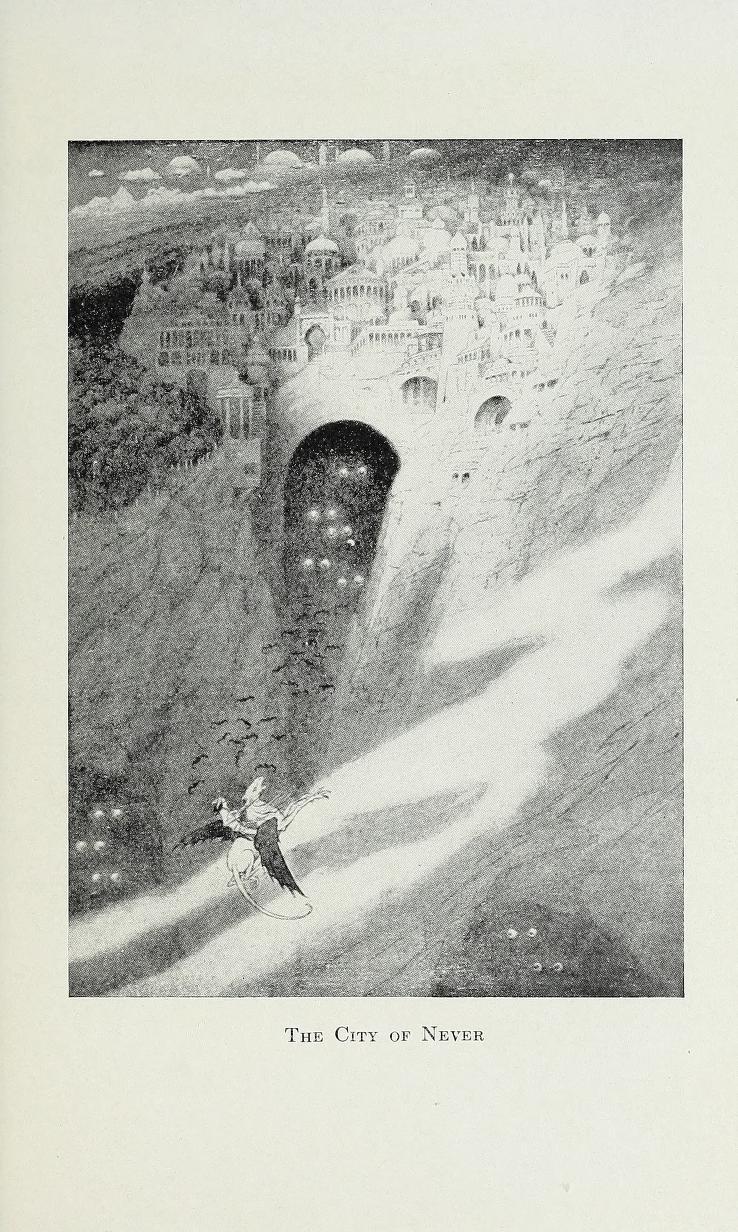 Sime, Sidney. The City of Never. 1912. The Book of Wonder, by Lord Dunsany, John W. Luce and Company, 1912, p. 101. https://archive.org/details/bookofwonderchro01duns/page/100/mode/2up