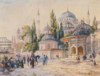 "The Sehzade Mosque in Laleli, Istanbul" by Ludwig Hans Fischer is licensed under Public Domain