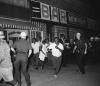 This image of protesters storming through armed and helmeted officers illustrates the anger of civilians of the Harlem Community. Infuriated by the wrongful murder of an innocent fifteen year old African American in an act of police brutality, they stormed the streets of the city calling for discipline action against the NYPD as well as the arrest of the officer who killed James Powell. This image is eerily familiar to events continuing today, as police brutality continues against Black Americans.