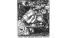 Dante Gabriel Rossetti, “Buy from Us with a Golden Curl,” from Goblin Market and Other Poems by Christina Rossetti, 1862, The Victorian Web. Dante Gabriel Rossetti illustrated Goblin Market and Other Poems (1862), written by his sister Christina Rossetti. Goblin Market considers the agency and appetite of women through two sisters, good Lizzie and erring Laura, tempted to partake of forbidden fruit offered by goblin men. Victorian society prized modesty and restraint. Lizzie maintains the expectation of decorum: she refuses to cave to the goblin assortment of tantalizing fruit. Laura, on the other hand, is tempted. The goblins leer over Laura’s golden locks and claim this emblem of femininity in exchange for fruit. Dante Gabriel Rossetti freezes this moment: scissors press against Laura’s long, flowing hair, which drapes a plate of pumpkin and pomegranate. The goblins, beastly owls and rodents, menacingly crowd around Laura. The wood engraving brims with claustrophobia; the closeness and clutter of the creatures visualizes the goblins’ crowing and cooing voices in Christina Rossetti’s text. Notably, Lizzie, positioned in the corner of the scene, has short, dark hair, contrasting Laura’s long and shiny golden curls. Rossetti’s illustration reinforces the physical and moral difference between the sisters and features Laura, about to indulge her appetite, compromising her virtue in the eyes of Victorian society. This artwork establishes Rossetti's range, fascination with female figures, and commitment to sensuality.
