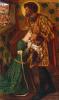 Dante Gabriel Rossetti's St. George and the Princess Sabra is a watercolor painting on paper. The model for Princess Sabra is Elizabeth Siddal (Siddal sat for the Princess a few days before she died). In this picture, we observe St. George after he has killed the dragon, with the Princess Sabra thanking him. He looks out the window to the rejoicing crowd who celebrate their deliverance and carry the dragon's head in triumph. DGR began the picture in late 1861 and completed it around 13 January 1862. Ellen Heaton approached DGR to buy it and they came to an agreement in a few days at the end of December 1861. She bought it for 65 guineas. In 1868, DGR made a water-colour replica which he sold to Frederick W. Craven in 1871, but the location of this picture is not known. This work is in the public domain in the United States because it was published (or registered with the U.S. Copyright Office) before January 1, 1923. Courtesy of Wikimedia Commons.