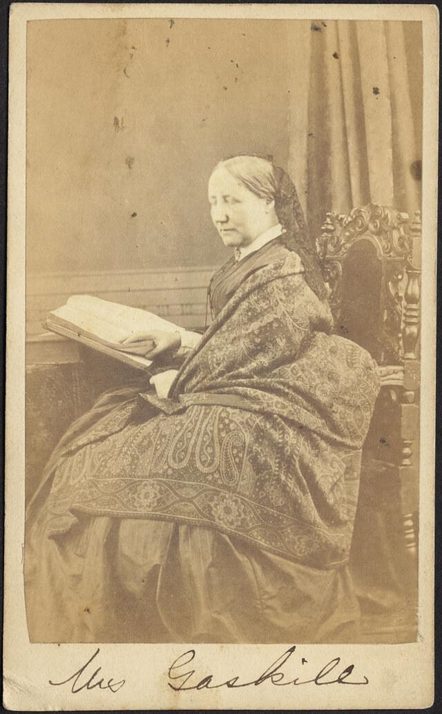 This is a photo of the author of "The Old Nurse's Story", Elizabeth Gaskell. Gaskell is depicted sitting on an ornate chair, reading a book. This image was found using the Creative Commons database. "Mrs. Gaskell [front]" by Boston Public Library is licensed under CC BY-NC-ND 2.0. The URL for the source is: af1d311c-293b-49df-a681-59105a4fdc9a.