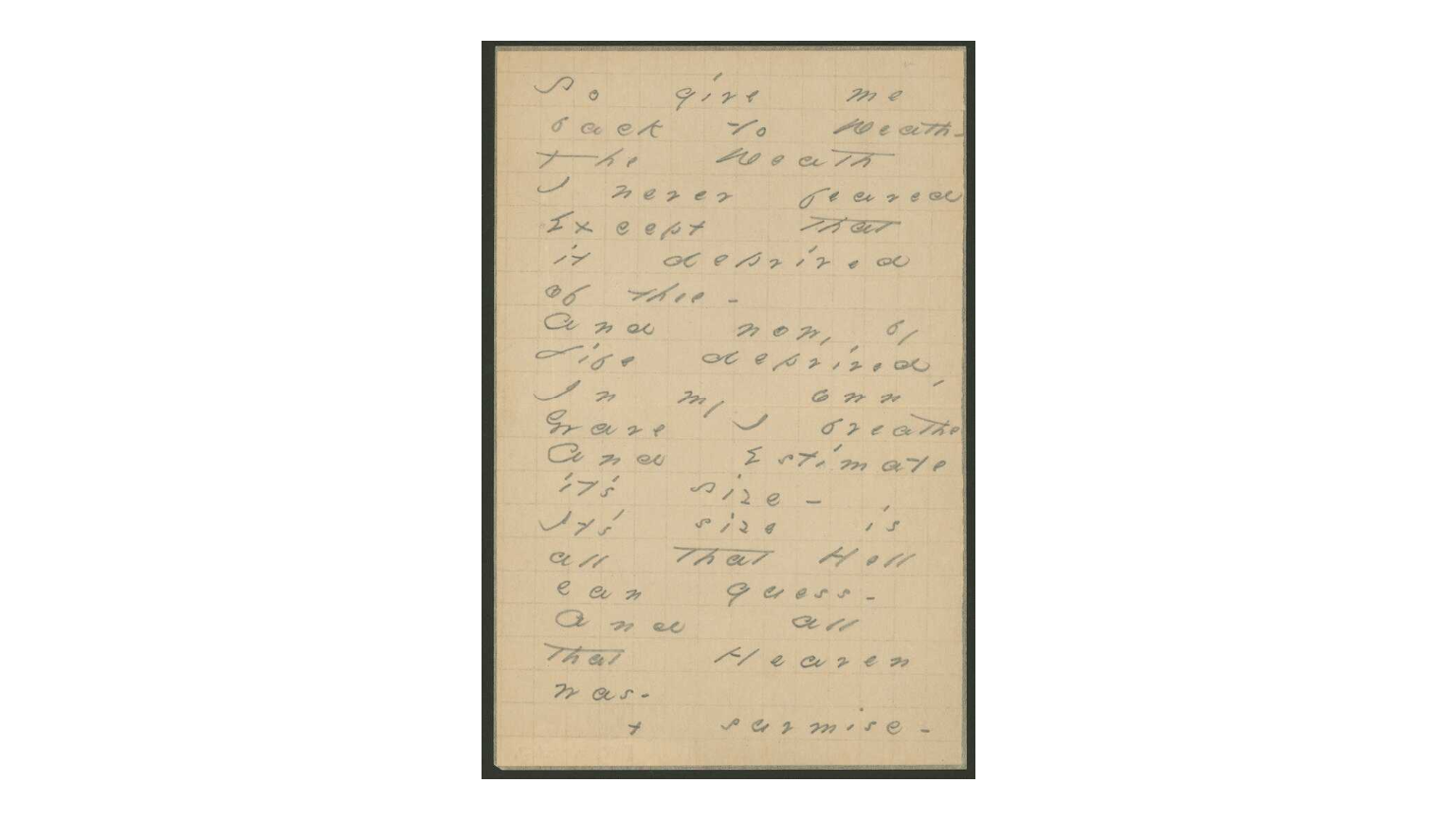 While it is well known that Emily Dickinson had a morbid attachment to death and often wrote on the subject, her last poem, "So Give Me Back to Death" was perhaps the most appropriately titled and themed as it was written on her literal death bed. Some time in the winter of 1885, just a few short months before her death, while Emily lay withering away in bed awaiting what she knew would be her end, she penned her last poem, "So Give Me Back To Death," which is pictured here. Emily's death came after two years of suffering from what was believed to be a chronic kidney disorder named Bright'…