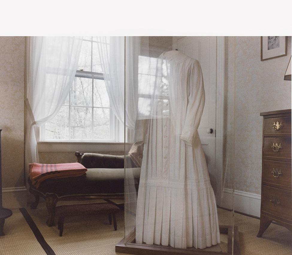 This is a picture of Emily Dickinson's white dress, which has grown in popularity and used to symbolize herself and her poetry. People have made biblical connections to her use of white in her poetry and people often theorize that white was her favorite color to wear.