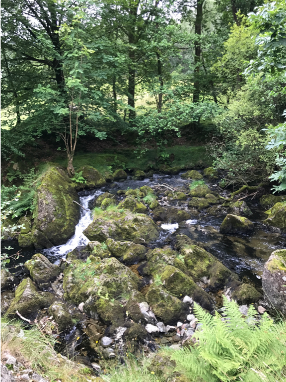 In the poem, Wordsworth describes his (implicitly) hurried, confused roaming "up the brook" that leads to this dell (17). Click here for a video "re-enacting" this roaming on the "Wordsworth: Poetry and Place" digital learning tool.