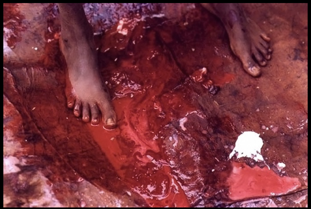 These rites are often done without anesthetics of any kind and performed on very young women and children. Often, as depicted here, these rites are carried out by other women who have also had this done to themselves. This girl is likely somewhere between the age of 10 and 15, but female genital mutilation can be conducted anywhere from days after birth to after starting puberty; in half of the countries that provide national data, most girls are cut before the age of five.
