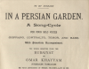 From within the first page, there are the lyrics without music, to be reviewed on their own, or shared with an audience. In this edition, these lyrics are replicated inside the programme of a specific production in Madison, Wisconsin 1905. Lehmann has selected from the entire fourth edition by FitzGerald and transformed it into thirty-three parts for solo or quartet performance. We can see that the verses chosen are laden in imagery and luxury, and of course, gardens! (See Exhibit 2) We see, also, the re-introduction of Persian culture to an American audience. “True Dawn” is referred to as “a well-known phenomenon in the East, ” demonstrating the exoticism expected when this song is performed, “Iram” is defined as a garden but not King Shaddad.
