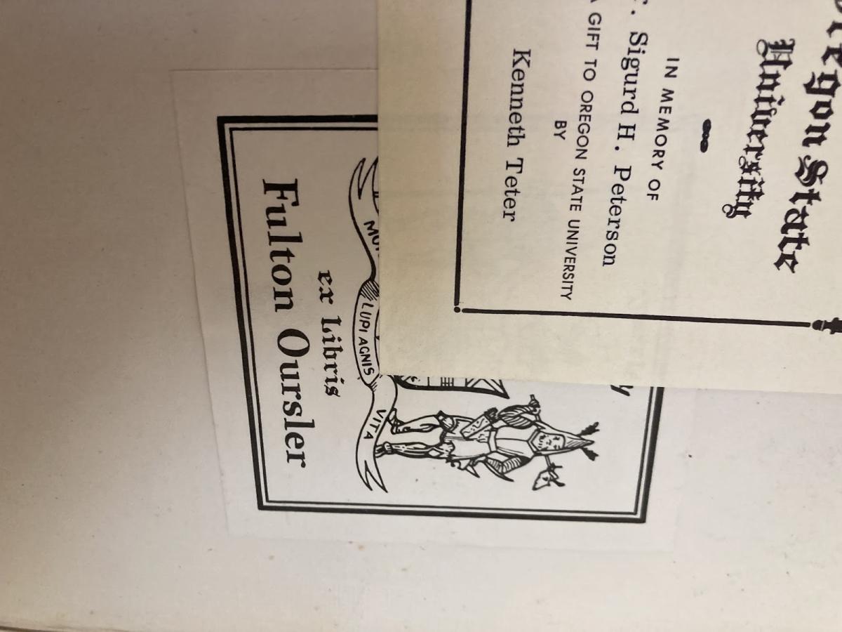 Said edition, gifted to Grace Perkins, bears several signifiers of a gift book, as described by Black. An internal inscription solidifies the volume as a Christmas gift, while the bookplate indicating its inclusion in a personal library suggests its placement in the home, member to a larger collection [See images 1 and 2]. Seeing as Perkins and the book's purported owner, Fulton Oursler, do not share a name, one must consider whether the edition was gifted out of Oursler's personal library into Perkins' possession, if the two engaged in an unmarried living arrangement within which a gift from Oursler simultaneously belonging to his collection would cohere, or if the book had passed hands into a third party's possession prior to being gifted. Unknowable as the specific context may be, the evident genealogy suggests that the edition’s original owner ensured its survival long enough to pass on to others, extending its lifespan in a way that jars with the poem’s nihilistic message (Black 62).