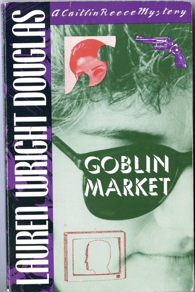 The novel Goblin Market: A Caitlin Reece Mystery was first published by Naiad Press in Tallahassee, Florida, in 1993. This version appears to be a first edition copy. The Naiad Press was one of the first publishing companies to be dedicated towards publishing lesbian stories and feminist texts. It was considered the oldest lesbian literature publisher in the world before merging into Bella Books. This book was primarily marketed towards lesbian readership, as it was part of the popular Caitlin Reece Mysteries series featuring the namesake lesbian detective. The main plotline features a lesbian couple being terrorized by a sexual-predator rendition of the goblins from the original Rossetti poem. This book incorporates a heavily modified retelling of Rossetti’s poem, “Goblin Market”, reinterpreting the story in a modern sense. Similar to the original, the narrative still features an emphasis on sisterhood as well as the plot point of dealing with sinister goblins (men in this version) selling elusive and addicting goods. The author of the text is Lauren Wright Douglas, born December 14, 1947. Douglas has authored several other pieces of lesbian fiction for the Naiad press, including science-fiction such as In the Blood and A Plague of Change, mystery novels, and various short stories. She has won several literary awards for her contribution to lesbian literature. The only illustration seems to be the one used for the front cover. It is unclear who the illustrator of the front cover is, but it appears as if they used a collage style technique through the fusing of photography and illustrations.
