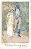 Henry Brock and Charles Brock, "Mr. Knightley and Emma Woodhouse," for Emma (1816), by Jane Austen, ca 1898, Molland's Public Library. This illustration depicts Mr. Knightley and Emma Woodhouse, and it is one of the many illustrations in Jane Austen's Emma that Henry Brock contributed to. Henry and his brother, Charles Brock, worked directly with Jane Austen's novels to create illustrations that visually transport readers into her works. The illustration above can be attributed to the Brock brothers by stylistic features, such as their keen eye for fashion sense during this period, the social customs of the novel, and how attire reflects the surroundings that the characters are inhabiting during the scene. Charles Brock specifically focused on body language and facial expressions to bring out the true feelings of each of the characters. We can see in the image that all of these elements come together to display Mr. Knightley and Emma Woodhouse as they take a walk through the gardens. This scene shows much romance, as Charles Brock does a wonderful job of getting details such as the handholding, and the bodies of the two characters leaning into each other for comfort. These small moments exemplify the illustrations, and show why Charles was so widely in demand as an illustrator during the Victorian age.