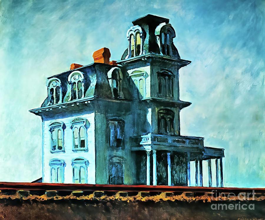 This painting conjures a sense of isolation, evoking a feeling of abandonment and decay also portrayed in the short story. This painting corresponds to the theme of the macabre because it causes people to feel suspense, fear, and decay, evoking an eerie feeling. Within the story, it is stated, "I looked upon the scene before me—upon the mere house, and the simple landscape features of the domain—upon the bleak walls—upon the vacant eye-like windows..." This quote initially describes the House of Usher and sets a supernatural presence throughout the story.