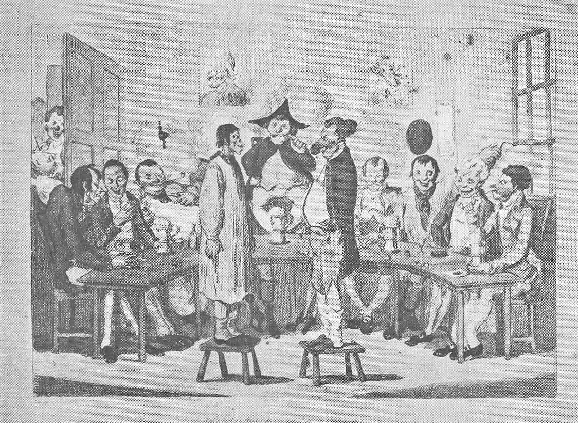 This features an advertisement from 1806 for the Liverpool Ugly Face Club's anniversary. There are approximately a dozen men gathered in this room, all of whom have noticeably ugly appearances. A majority of the men have facial deformities and unflattering features, like large noses, bulging eyes, and flat faces. While some of these features are natural, things like bulging eyes and flat faces are typical side effects of other disabilities, so the depictions of them allow viewers to assume some of these men were disabled. In addition, there are two men standing on stools in front of the rest of the members, one of whom is sickly thin and appears to be missing his nose. The other man is heavier and has a large, inflamed nose. This was a depiction of the two ugliest members facing off while the other members voted. Since it was an advertisement for an ugly club, it had to look appealing to potential members. Luckily, the advertisement shows a lot of the men laughing, talking, and drinking. However, the exaggerated expressions on the men's faces were an attempt to make them look dumb since many of these men suffered from disabilities. Again, this was during a time when little was known about disabilities, so it was assumed that they were morally and intellectually inept. Overall, the advertisement depicts the comradery ugly people had within these clubs, but reinforces the harmful idea of normalcy in the Victorian era.
