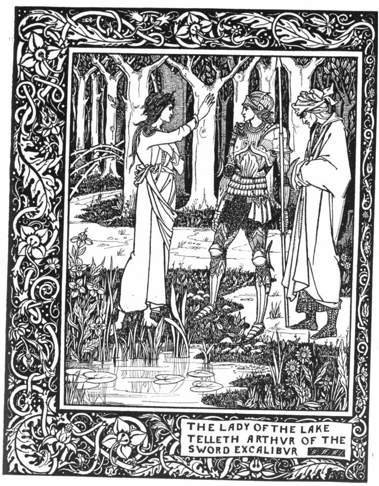 Beardsley, Aubrey. “The Lady of the Lake Telleth Arthur of the Sword Excalibur.” Le Morte D’Arthur, J. M. Dent and Co., 1893, between p. 46 and p. 47.