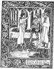 Aubrey Beardsley’s works have been associated with many different artistic movements including Aestheticism, Decadence, and Art Nouveau. This piece, “The Lady of the Lake” (between 46 and 47), is a prime example of Art Nouveau, which is characterized by “arabesque, curvilinear shapes” (Credo Reference np); the decorative border of the image is such an aspect. Beardsley also designed the cover for Arthur Machen’s first edition of his novel The Three Imposters, where entangled lines sprawl about, such as on the border of this image. The flowing style of Art Nouveau invites a reconciliation of “technology, nature and individuality” (np). This border calls for contemplation of this reconciliation through beauty for beauty’s sake, art for art’s sake.