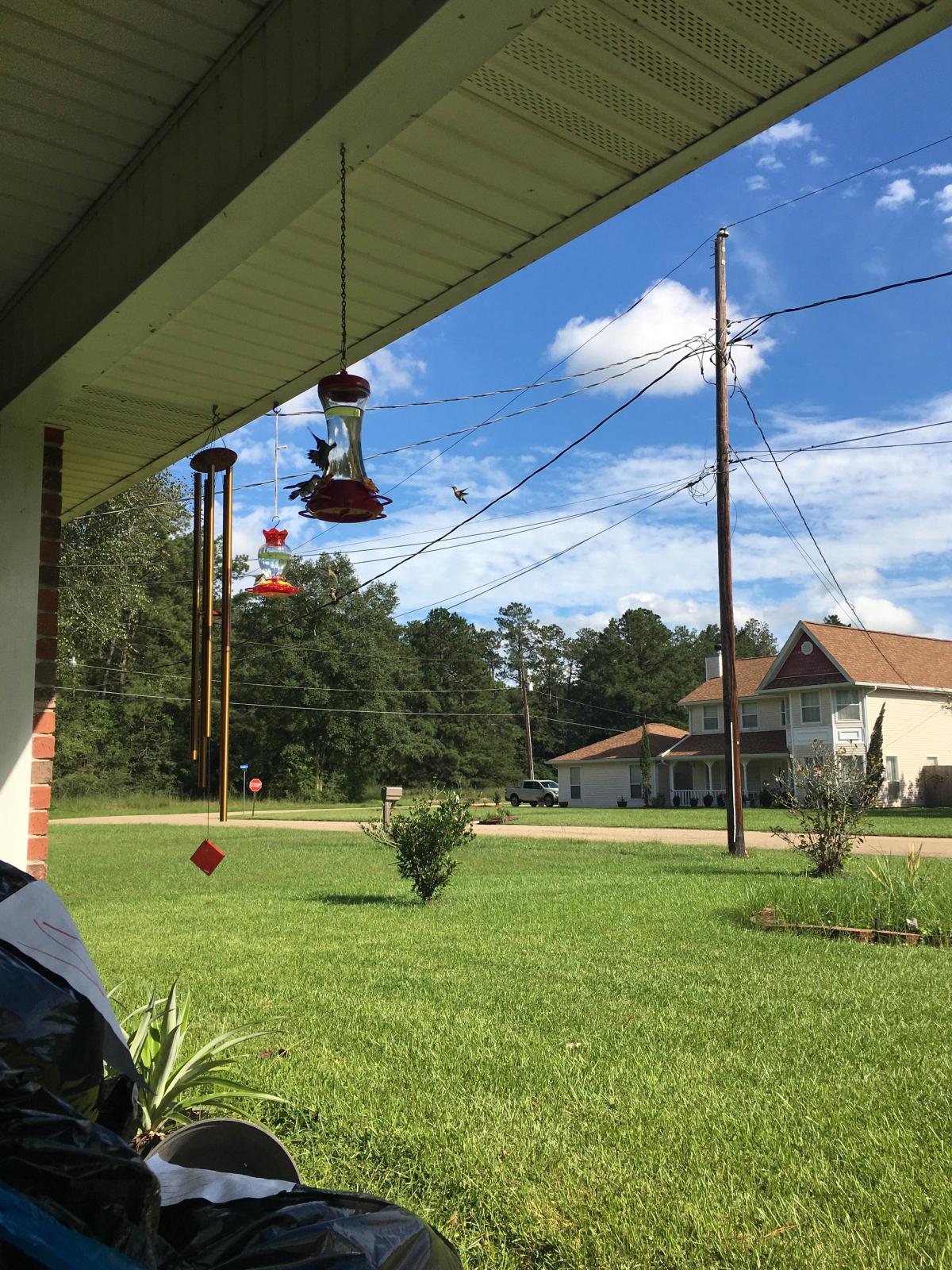 These photos where taken while I was sitting on my porch waiting for the mail. I recently filled my hummingbird feeders and I managed to capture some photos of the little angels. My first photo feels innocent to me because I was quick and did not focus on composition or grace. The birds moved fast so I wanted to catch as much of them as possible. The second photo is framed as I zoomed in on a specific bird and waited for the right time to photo it. I wanted to try and capture a "pose" of the bird, with it's wings out and looking in profile. I also tried to have it contrast to the wires in the background, and use the trees and feeds as a "curve" to guide the eyes around the photo. The argument I make in the third is the content and unbothered attitude of the hummers as they flew through a more artificial part of the woods, through all the cables and wires, just to drink from a plastic and glass feeder. They are not picky about how they survive. They also don't seem to mind someone walking around with their phone pointed at them.
