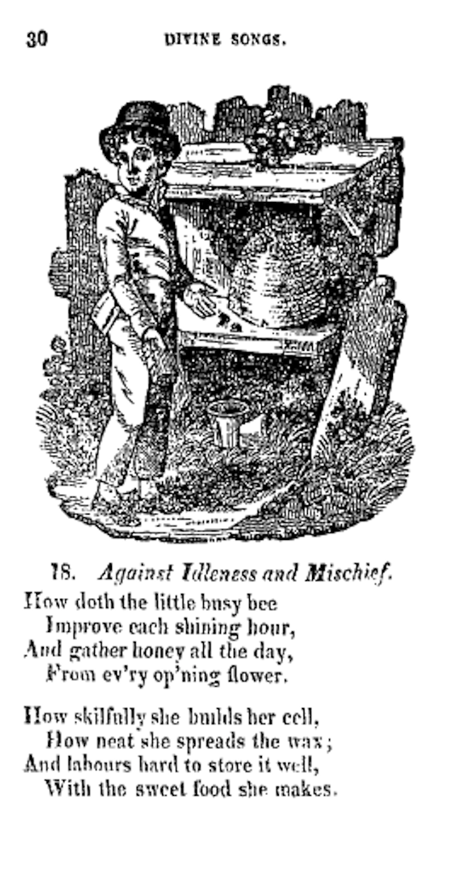 "Against Idleness and Mischief," from Divine Songs (1715), by Isaac Watts, Illustrator unknown.