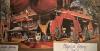 Majolica Pottery Booth by Kayla Moody, 2025. This design takes on two dimensions to depict a hypothetical booth at the Great Exhibition of 1851 displaying the wonders of Majolica pottery. It features various wares ranging in time and origin to highlight the versatility and vibrance of majolica pottery. The collage includes red drapery and indoor greenery to depict the ornate and visually appealing atmosphere of the Great Exhibition.