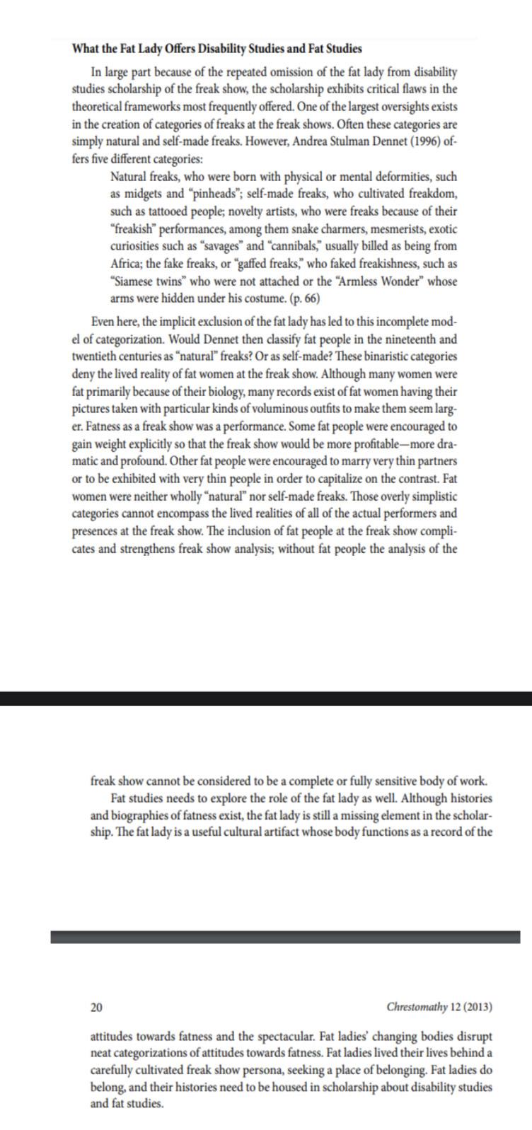 Cantrell, Amber. “Freaking Fatness through History: Critical Intersections of Fatness and