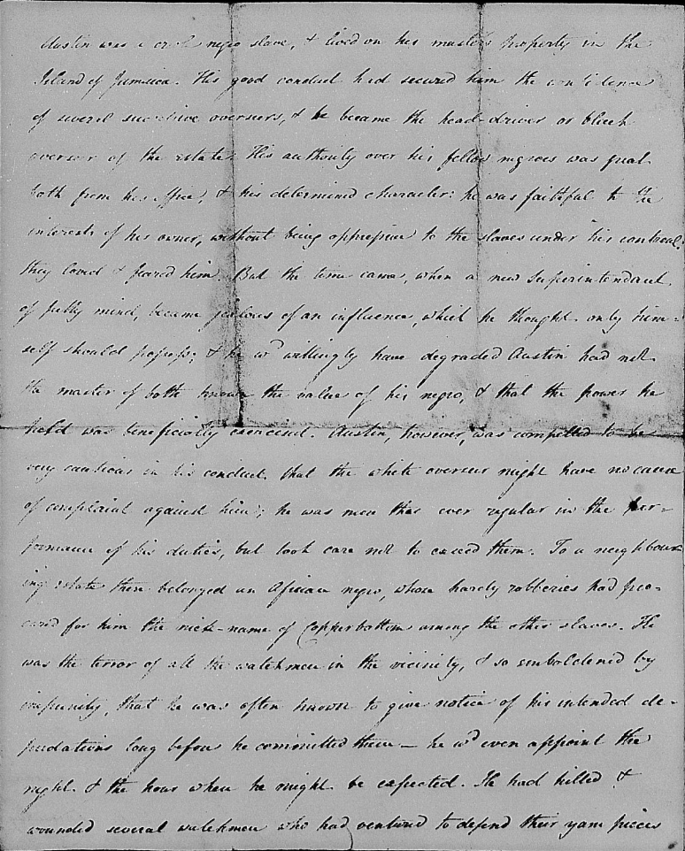 Transcript: Austin was a creole negro slave, & lived on his master's property in the