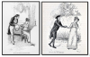 Hugh Thomson, "The note was held out, and must be taken," 1897, for Mansfield Park (1814), Volume II, Chapter XII and "So much love and eloquence," 1894, for Pride and Prejudice (1813), Volume I, Chapter XXII. I chose these images from Hugh Thomson's illustrations of Jane Austen's novels to highlight the similarity and differences between Fanny Price in Mansfield Park and Charlotte Lucas in Pride and Prejudice. Charlotte and Fanny come from similar backgrounds: large families with no clear future as they are impoverished gentility. Charlotte does not marry for love but for practicality. And Charlotte's best friend, Elizabeth Bennet, is shocked by this decision. Elizabeth believes everyone should marry for love, but that is not a practical option for Charlotte. Fanny Price on the other hand wants to marry for love, and her friend, Mary Crawford, is shocked that Fanny does not want such a practical marriage to her brother, Henry. Just before writing this letter to Mary Crawford, the shy protagonist of Mansfield Park denies Henry Crawford's hand in marriage, though with his hand he offers stability and the chance for Fanny to escape her destitute life in Portsmouth. Henry Crawford, as Fanny already knows, is later found out to be a scoundrel. Not many people give Fanny her flowers for her courage to deny a life with someone so obviously affectionate for her. But perhaps Fanny is not immediately deserving of these flowers as she was living with her uncle at the time, gaining a proper education and her chances for marriage then became much better than the twenty-seven year-old Charlotte Lucas. These two images, side-by-side, really capture their relationship with these men they feel no affection for; Charlotte (pictured on the left) makes her primary concern the future of her family while Fannt (pictured on the right) chooses to wait for love. Austen finds ways to make the reader consider the economic consequences of marriage throughout her oeuvre, including this comparison between two characters so similar yet so different.