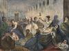 This photo by an unknown artist illustrates the crowded, inhumane conditions of the asylum. The women are tightly packed together and they seem to be uncomfortable. A few of the women are looking upwards as if thhat is their way to escape, while others like the woman in the bottom left corner, hold their hands to their ears and wait for the commotion to end. This photo accurately depicts the conditions of this asylum before Nellie Bly, an American journalist, exposed them for the wretched environment that hundreds to thousands of people had to go through at a time. Eventually, they were given more money from the government to improve the asylum until it eventually became a regular hospital in the 1950's.