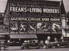 This is the earliest piece of evidence for the tonal shift in Freakshows, The sign reads "Freaks and Living wonders". Now positive reinforcement and identification is starting to become present within freakshows. It is starting to lose its edge of negativity and developing into recognizing the abilities of those who partake in these shows. This is a big shift in the cultural movement at the time, a trend that will persist throughout the coming years.