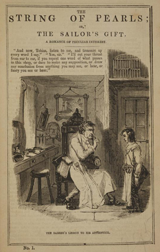 Sweeney Todd lectures young Tobias on the importance of keeping his mouth shut. Todd does not want any suspicion surrounding his barber shop, and threatens Tobias that he will slit his throat if he makes any conclusions about what Sweeny's up to.