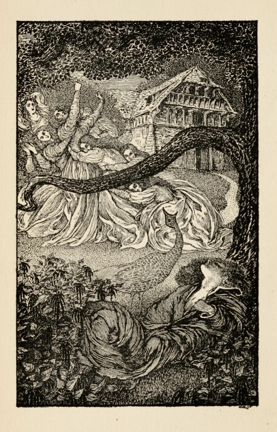 The House of Joy (1895) is a collection of adult fairy tales written and illustrated by Laurence Housman. His sister, Clemence Housman, a talented writer and wood engraver provided the engravings for the illustrations.