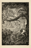 This front piece illustration appears on page sixteen beside the first page of The Prince With The Nine Sorrows. The tale follows the story of a cursed young prince, who is fated to die in his twentieth year at the hands of his foster sister. The Queen, who favours her son, allows her 9 daughters to be annually taken away by a witch and transformed into birds to prevent the curse. Overwhelmed by the guilt and sorrow of losing his sisters, the prince sets off in his twentieth year to find his foster sisters, willing to sacrifice his life for his siblings to return to their human form.