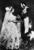 Photography hadn't been invented when Victoria and Albert were married, thus there are only paintings of the actual wedding. This photograph was staged later to make use of the recently invented camera. Today, when the actual dress is displayed, it is displayed without the lace overlay, as the second photograph shows, since the lace is too fragile to be handled.