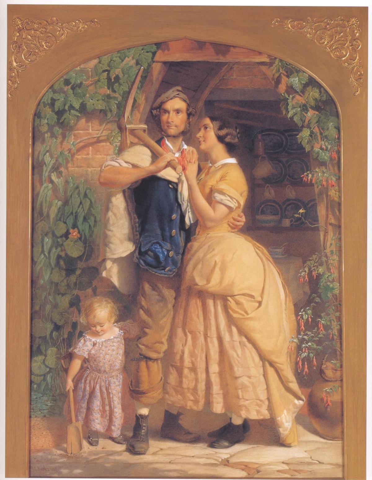 In the 19th century, women were expected to uphold a housewife standard. Women were expected to do the cooking, cleaning, and taking care of the children. Their role was way different from men in the 19th century. Women were not allowed to be outspoken, and they were not given the same opportunities as men. Women were expected to support a certain standard society painted for them to have. The picture shown gives you a visual of how women were expected to be in the 19th century. You see the woman is looking up to what looks like her husband, as well as her child looking up to her. She is supposed to be setting an example for her child. The woman portrays misery, she shows no facial expression. In the poem Goblin Market, two sisters Laura and Lizzie encounter goblins. These goblins tried to lure the sisters into buying their fruit, and eventually succeed. Laura disobeyed the rules of a woman in the 19th century because she fell for the taunting the goblins did, she ate the fruit. Meanwhile, Lizzie upheld the role of a woman in the 19th century and tried to convince her sister to stay strong.