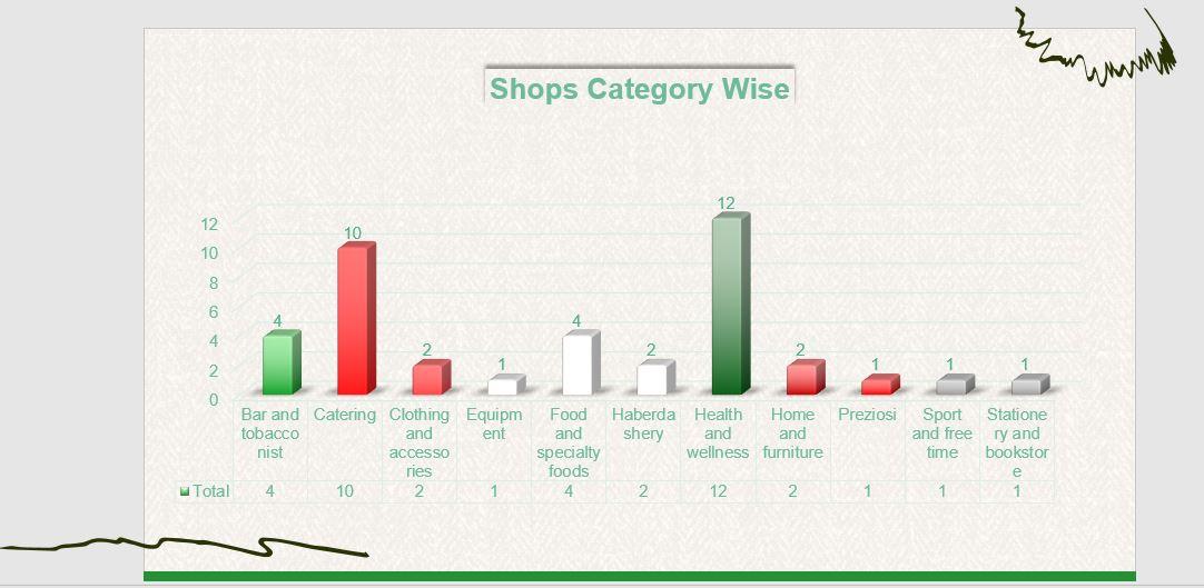 After Visualization in this bar graph you can see the total number of shops by their categories in lombardy. Featured in Exhibit Historical Shops In Lombardy Region Copyright © Vetted? No